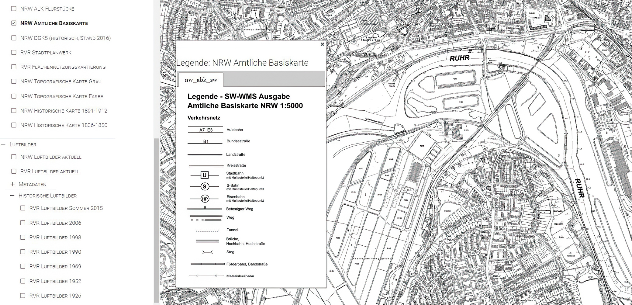 Beispiel Legendenaufruf NRW Basiskarte