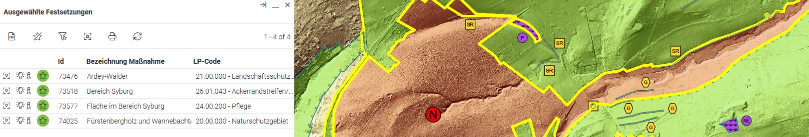 Beispiel einer Selektionstabelle der Fachanwendung Landschaftspläne der Metropole Ruhr